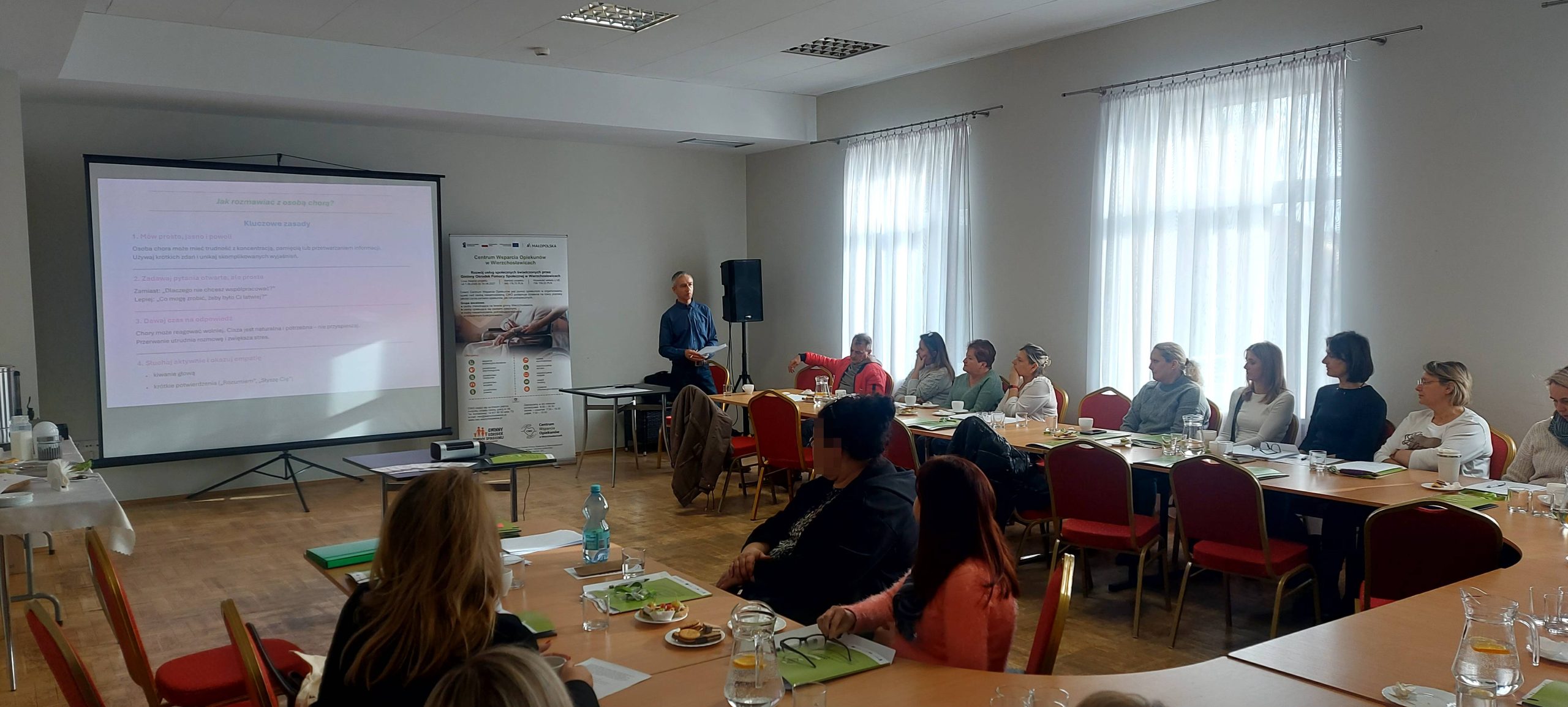 29 listopada 2025 r. w Gminnym Centrum Kultury w Wierzchosławicach odbyło się szkolenie, które było dla nas ogromną przyjemnością. Cieszymy się, że tak wielu opiekunów – zarówno formalnych, jak i nieformalnych – znalazło czas, aby wspólnie uczyć się, rozmawiać i wymieniać doświadczenia. Łącznie w szkoleniu uczestniczyły 23 osoby. Atmosfera była wyjątkowa: pełna otwartości, wzajemnego zrozumienia i chęci niesienia wsparcia sobie nawzajem.